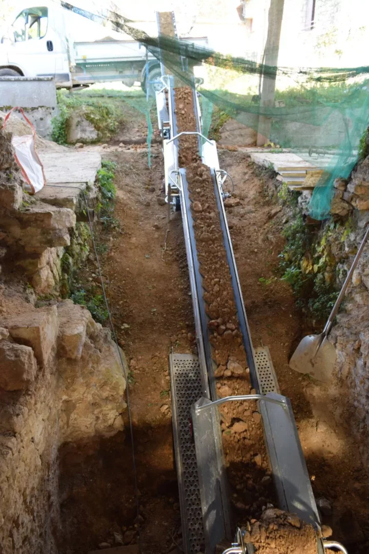 Plus qu’un gain de temps, la mise en place des convoyeurs terre a considérablement réduit la pénibilité pour les équipes, les manipulations tout en optimisant la productivité. Les ouvriers ont pu se concentrer sur d’autres tâches, réduisant ainsi les temps morts et les coûts d’intervention. L’évacuation s’est effectuée de manière continue, sans débordement, sans attente et sans effort physique excessif, améliorant à la fois la qualité et le rythme du chantier.